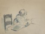 Willem VAN HASSELT [hollandais] (1882-1963) Jeune enfant à l'écriture Dessin signé en bas à droite 19 x 24.5 cm