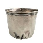 CURON en argent uni, le col souligné de filets XVIIIème H.: 4.6 cm Poids: 30 gr (déchirures et chocs)