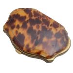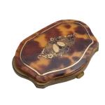 PORTE MONNAIE en écaille piqué à décor de deux médaillons dans un entourage floral 5.5 x 7.5 cm