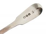 Petite CUILLERE A SAUPOUDRER en argent, modèle uniplat, gravée d'un lion tenant une flèche Travail anglais L.: 15 cm Poids: 37 gr