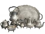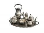 Service à thé et café en argent, à riche décor feuillagé, joncs rubanés, coquilles, chiffré, comprenant:
