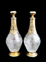 Paire de FLACONS et leurs bouchons en cristal taillé et gravé, les montures en argent Minerve H.: 21.5 cm Poids brut: 744 gr (anciennement vermeillés)
