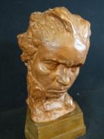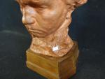 FOUCAULT Siméon Charles Joseph (1884-1923). Buste de Ludwig van Beethoven. Sculpture en terre cuite, signé en creux, sur un socle en bois. H. : 38 cm (sans le socle)