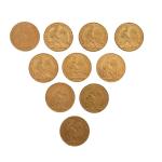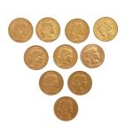 10 PIECES de 20 francs or (2 x 1902, 4 x 1908, 1904, 1906, 1909 et 1912 Lot conservé en banque, vendu sur désignation