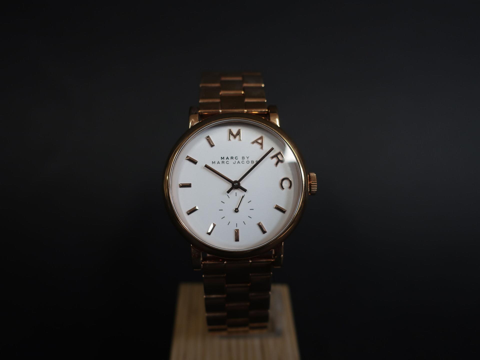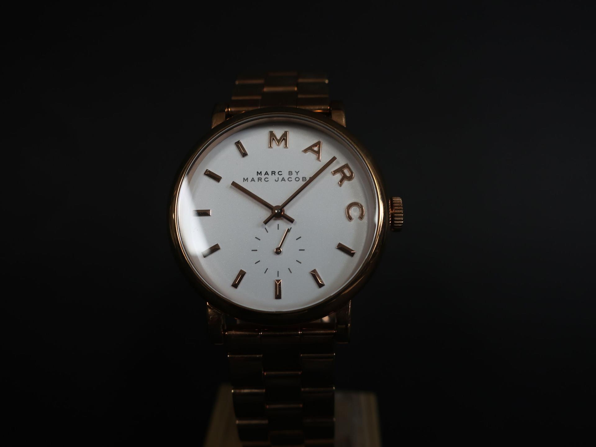 MARC by MARC JACOBS - Montre bracelet de femme en métal doré modèle MBM3244, bracelet maille à boucle déployante.