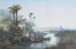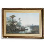 P. PASCAL (XIXème) Paysage orientaliste, 1879. Gouache et aquarelle signée et datée en bas à droite 32 x 49 cm à vue