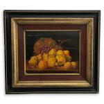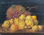 ECOLE FRANCAISE du XIXème Nature morte aux fruits Huile sur panneau 24.5 x 30 cm (accidents, manques, fentes)