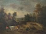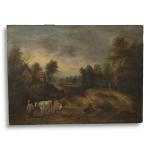 ECOLE FRANCAISE du XIXème Les gardiens de vaches Huile sur panneau parqueté 28 x 38 cm (petites fentes)