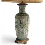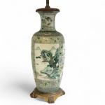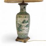 CHINE Vase en porcelaine à décor famille verte, monture en bronze formant lampe H.: 53 cm