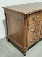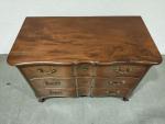 COMMODE nantaise en acajou sculpté et mouluré, ouvrant à trois portes en façade, la façade de forme arbalète Travail de port, Nantes, XVIIIème H.: 87 cm l.: 126 cm P.: 64 cm