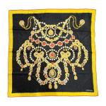 MUST DE CARTIER FOULARD soie damassée fo*nd noir bord or liseré rouge