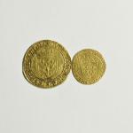 LOUIS XII. ½ écu d'or au soleil. Bayonne. (Dy. 658, L. 593). Ecu d'or au soleil de Provence. (Dy. 653). 1,69 g. 3,49 g. Ens. 2 p. TB et Presque Très Beau.