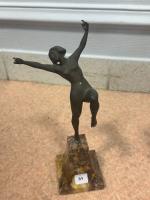Ecole moderne Danseuse Sculpture en régule sur socle en marbre H: 27 cm