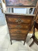 CHIFFONNIER en bois de placage, ouvrant en façade par cinq rangs de tiroirs, style Transition (accidents) H: 90 cm