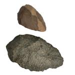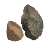 Lot de 2 bifaces, pierre basaltique et quartzite, Afrique sub-saharienne, Acheuléen ancien et récent, 11 cm et 17,5 cm. Expert: Daniel Lebeurrier