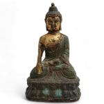 CHINE Divinité en bronze en partie peint et doré H.: 12.5 cm