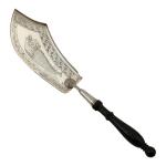 PELLE A POISSON en argent à décor repercé et gravé d'un poisson, la manche en bois noirci Paris, 1809-1819 Orfèvre: Aimée Catherine CLERIN, insculpation en 1807 L.: 37 cm Poids brut: 208 gr