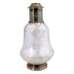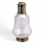 FLACON couvert en cristal taillé et argent Minerve. Orfèvre: AUCOC H.: 14 cm Poids brut: 246 gr (manque le bouchon intérieur)