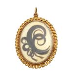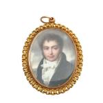 ECOLE FRANCAISE du XIXème Portrait d'homme Miniature ovale dans une monture en or jaune, au dos une mèche de cheveux 5.5 x 4 cm hors tout