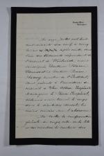 Louis-Napoléon BONAPARTE, Brouillon manuscrit du rapport établi par le baron Corvisart et le baron Larrey lors de l'ouverture du cercueil le 11 juillet 1879, 7 pp. in-4 sur un papier de deuil à l'en-tête de Camden Place, Chislehurst. Après avoir formellement identifié le corps ils décrivent les différentes blessures. Il nous reste à ajouter qu'il n'existait sur (tout le corps) toute la surface du corps aucune blessure reçue autrement que par le devant. Quelques ratures et corrections.