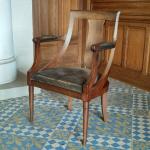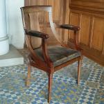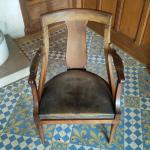 FAUTEUIL DE BUREAU en acajou mouluré, la garniture à châssis et les manchettes en cuir Epoque Empire H.: 96 cm l.: 62 cm P.: 54 cm