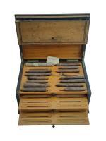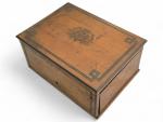 COFFRET A CIGARES en bois de placage et marqueterie, le couvercle annoté "Souvenir de Fontainebleau" Fin XIXème 15 x 30.5 x 22 cm (petits accidents)