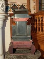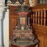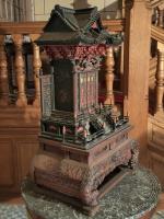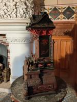 ASIE Autel bouddhique en bois exotique sculpté et mouluré richement sculpté de motifs ornementaux figurant un temple H.: 116 cm l.: 73 cm P.: 45 cm