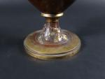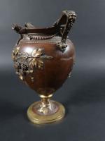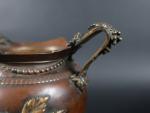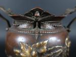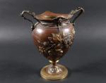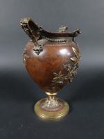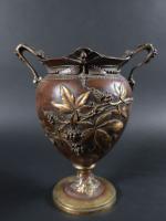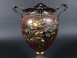 Vase de forme balustre en laiton à patine brune à décor en relief de mûres et libellules. XIXème siècle, travail dans le gout de Barbedienne. H : 23 cm