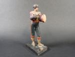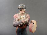 Joueur de tambourin espagnol en terre cuite peinte, le tambourin en carton, la base en bois. Haut.: 21 cm (tête recollée).