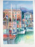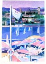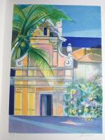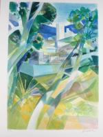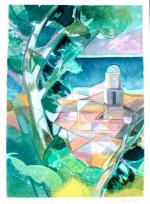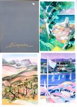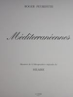 Camille Hilaire (1916-2004) texte de Roger Peyrefitte - Editeur La Topaze. Méditerranéennes. Portefeuille sous entoilage tissu bleu, comprenant 12 lithographies en couleurs Dim.: 51 x 37 cm. Exemplaire F/L d'un tirage de 12 exemplaires sur Velin Rives (manque l'aquarelle originale)