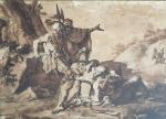 ECOLE FRANCAISE du XVIIIème, dans le goût de ROSA Après la bataille Lavis 25 x 34.5 cm à vue (traces d'humidité)