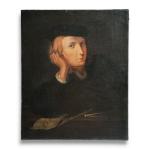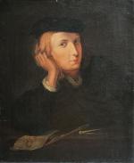 ECOLE FRANCAISE du XIXème Portrait d'homme accoudé Huile sur toile 60.5 x 50 cm (importantes restaurations)