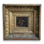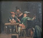 ECOLE FLAMANDE du XIXème Scène d'auberge Huile sur cuivre 10.5 x 12 cm