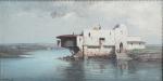 JONSTON (XIX-XXème) Paysage orientaliste, le Bosphore? Huile sur toile signée en bas à gauche 22 x 41 cm