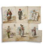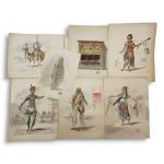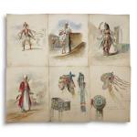 Pierre Eugène LACOSTE (1818-1908) Ballet d'Imaïla Châtelet Recueil de vingt-cinq aquarelles projets de costume pour un ballet 30 x 23 cm pour les plus grandes (piqûres, mouillures, parties manquantes)
