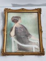 Alexis Louis DE BROCA (1868-1948) Portrait de dame Dessin aquarellé signé en bas à gauche 26.5 x 20 cm à vue