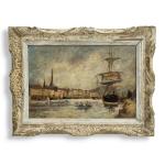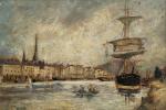 Eugène GALIEN-LALOUE (1854-1941) Bordeaux, les quais de la Garonne Huile sur panneau signée en bas à gauche de son pseudonyme "L. Dupuy" 19 x 27 cm