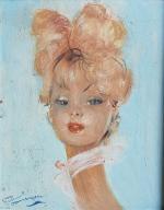 Jean Gabriel DOMERGUE (1889-1962) Colette Huile sur isorel signée en bas à gauche, titrée au dos 24 x 19 cm