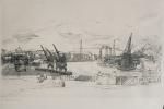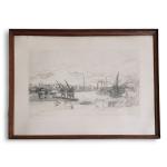 Étienne BOUCHAUD (1898-1989) Nantes, le port Gravure signée et justifiée 21/100. 46 x 64 cm à vue