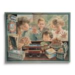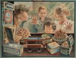 d'après Vincent BOCCINO (XIX-XXème) Les enfants derrière la vitrine Panonceau lithographié pour les Biscuits Lefèvre-Utile 68 x 52 cm