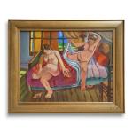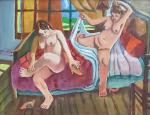 Marcel GONZALEZ (1928-2001) Deux femmes nues au lit, 1991. Huile sur toile signée et datée en bas à droite 50 x 65 cm