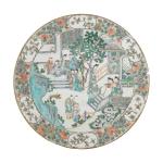 CHINE Plat rond en porcelaine à décor famille verte XIXème D.: 34.5 cm (éclat avec fêle)