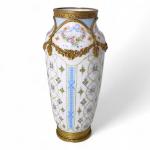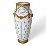 VASE en porcelaine à décor polychrome et or, les montures en bronze doré, Style Louis XVI, marque apocryphe de Sèvres H.: 31.5 cm