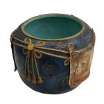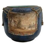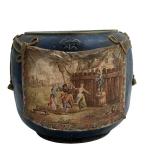 CACHE POT en faïence à décor d'une fête de campagne signée Marcke d'après Teniers H.: 26.5 cm (fêles)