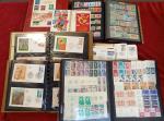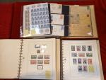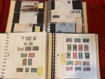 Dans deux gros cartons, collection de timbres de France en albums Safe, dont quelques valeurs moyennes et faciale en francs, plus des classeurs de doubles modernes neufs (faciale en francs par petits multiples), des enveloppes 1er Jour, un classeur de lettres et des timbres divers