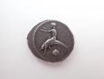 Italie. Calabre. Tarente. (vers 460-443 av. J.-C.). Statère. Phalantos nu, assis sur un dauphin à g. , applaudissant ; dessous, une coquille. R./ Taras nu assis à g., tenant une quenouille et une canne. (Ravel, Vlasto's collection of Tarentine coins 203 var.). Arg. 7,96 g. TB à Très Beau.