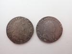 - 2 pièces de 1/10 d'écu au bandeau : Poitiers 1742 (2,80g) et Toulouse (?) 1763 (?) (2,58g)