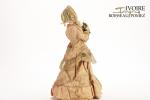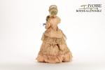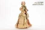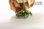 poupée automate à tête en papier mâché peint avec yeux en sulfure, elle est fixée sur un socle à 3 roues avec mécanisme à clef