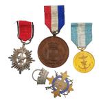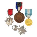 France Lot de 3 médailles de l'Institut de Sauvetage de la Méditerranée : En vermeil, attribuée à A Mr Le Marquis de Béthisy 1879, ruban. Ø : 3 cm ; Modèle ajouré en argent, ruban. 4,4 x 3,7 cm ; 1er Congrès de Sauvetage 1878, non attribuée, en bronze, ruban. Ø : 4,3 cm. On joint une médaille de Chevaliers-Sauveteurs des Alpes-Maritimes, non attribuée. Bronze argent et doré, émail, SR. Ø : 3,9 cm