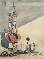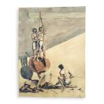 VALENTI (XXème) La Force, 1925. Aquarelle signée et datée en bas à droite 40 x 29.5 cm (petites déchirures)